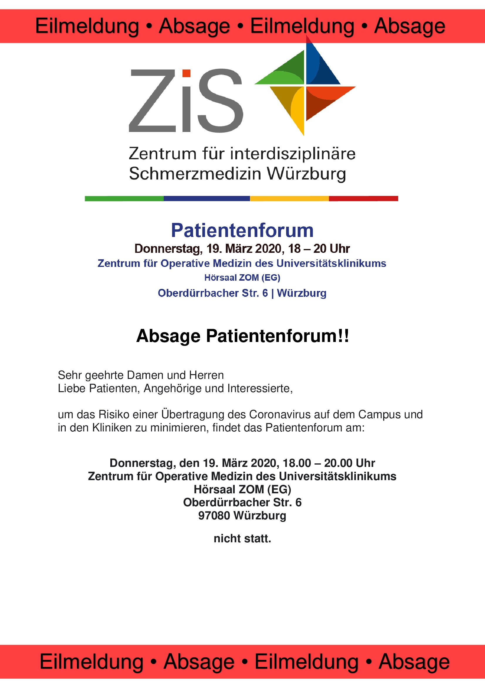 Zur Anmeldung kontaktiert man das IZSS unter Tel: 0931/201-21888 oder E-Mail: izss@ ukw.de. Im Internet findet sich das Zentrum unter www.ukw.de/izss.