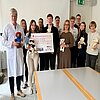 In diesem Jahr konnten durch den Teddy-Verkauf über 6.000 Euro gesammelt werden. Dank der großzügigen Unterstützung von Herrn Ralf Rhein und Herrn Joe Cumiskey wurde dieser Betrag auf 8.000 Euro erhöht. Gemeinsam mit den Auszubildenden wurde der Scheck an Prof. Eyrich von der Uni-Kinderklinik sowie an Heidrun Grauer, Repräsentantin der Elterninitiative Regenbogen, überreicht. Mit den Spendengeldern finanziert die Elterninitiative unter anderem die psychosoziale Unterstützung für die Patientenfamilien durch ein breit aufgestelltes Team aus Sozialpädagogen, Psychologen etc. Außerdem fördert der Verein die Krebsforschung an der Kinderklinik. Neben dem Scheck hatten die Auszubildenden auch noch eine große Anzahl an Teddys für die kleinen Patienten dabei, die Kunden zuvor gespendet haben. Ein gelungener Nachmittag, der den Auszubilden gezeigt hat, wie wichtig Ihre Unterstützung für dieses Projekt ist. Bereits in der Woche nach der Scheckübergabe konnten zahlreiche Teddys vom Stationspersonal an die Patienten verteilt werden und sorgten für Begeisterung.