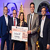 Bei der Förderpreisverleihung in der Veranstaltungs-Location „Maschinenhaus“ auf dem Würzburger Bürgerbräu-Gelände konnte sich die Delegation aus Fulda ein Bild davon machen, wofür „Forschung hilft“ die Spendengelder einsetzt: Bei dem Festakt wurden insgesamt fast 235.000 Euro an 21 Würzburger Krebsforschungsteams ausgeschüttet. Die seit der Gründung der Stiftung im Jahr 2017 vergebene Gesamtfördersumme stieg damit auf rund 1,1 Millionen Euro an. „Der Scheck aus Fulda trägt dazu bei, dass wir auch im kommenden Jahr wieder viele Wissenschaftlerinnen und Wissenschaftler in den entscheidenden Momenten ihrer Projekte unterstützen können“, betonte Gabriele Nelkenstock.
