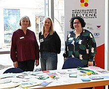 Präsent sein an öffentlichen Begegnungsorten: Im Falkenhaus Würzburg richtete der Würzburger Arbeitskreis für Seltene Erkrankungen (WAKSE) unter Beteiligung des ZESE die Aufmerksamkeit auf den Tag der Seltenen Erkrankungen 2025 und informierte über Anlaufstellen und Angebote. Passend zum Veranstaltungsort in der Stadtbücherei gab es auch eine bunte Auswahl an Lesestoff zum Thema.