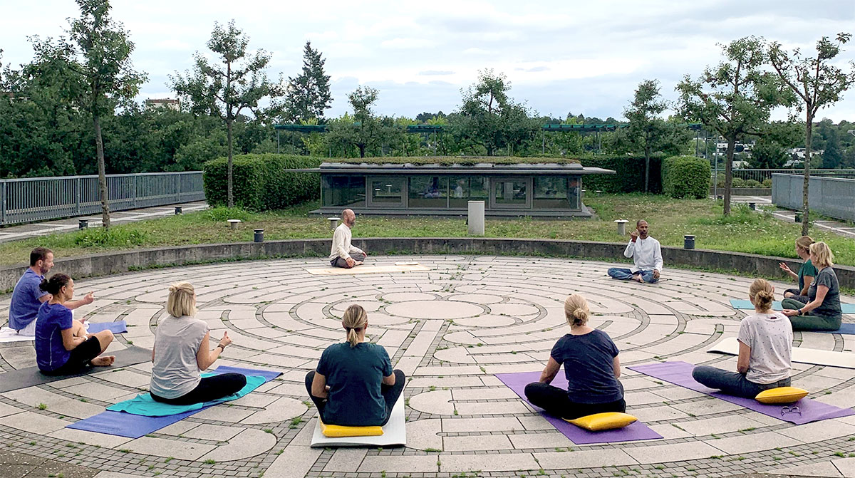 Am 31. Juli dieses Jahres bot der Yogalehrer Chaminda in Kooperation mit dem Betrieblichen Gesundheitsmanagement des UKW für die Klinikumsbeschäftigten eine kostenlose Einführung mit einfachen Übungen an. Bei den zwei, jeweils etwa einstündigen Durchläufen kamen insgesamt 20 Teilnehmerinnen und Teilnehmer auf der Außenterrasse des Zentrums für Innere Medizin zusammen.