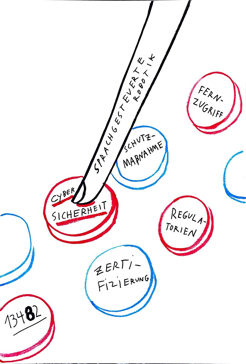 Warum Würzburg? „Wir hatten bereits im vorhergehenden Projekt, HybridVITA, hervorragend zusammengearbeitet. Wir waren effektiv, haben sehr viel erreicht, konnten uns immer aufeinander verlassen und wir hatten auch noch Spaß am Projekt. Aus diesem Grund wollten wir die Implementierung eines Roboterhundes im Krankenhaus auch gern in Würzburg mit Astrid Schmieder erforschen", kommentiert Christoph Zimmermann. Der studierte Elektro- und Informationstechniker und sein Team vom FZI befassen sich damit, wie eine natürliche sprachliche Kommunikation zwischen Fachpersonal, Hund und Patient stattfinden kann und wie das System bei einer kontinuierlichen Aufnahme von Hautoberflächen oder der Wundbetrachtung unterstützen kann. Bei HybridVITA ging es bereits um die medizinische Betreuung von Patientinnen und Patienten mit chronischen Hauterkrankungen mittels einer appbasierten Lösung mit kontaktloser Diagnostik.
