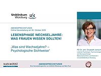 Abendsprechstunde: Lebensphase Wechseljahre - Was Frauen wissen sollten! "Was sind Wechseljahre? - Psychologische Sichtweise"