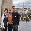 Die drei Forschenden stehen in Brüssel vor historischen Gebäuden.
