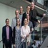 Arbeitsgruppenleiter und -leiterinnen haben sich auf der Treppe im Foyer des RVZ aufgestellt.