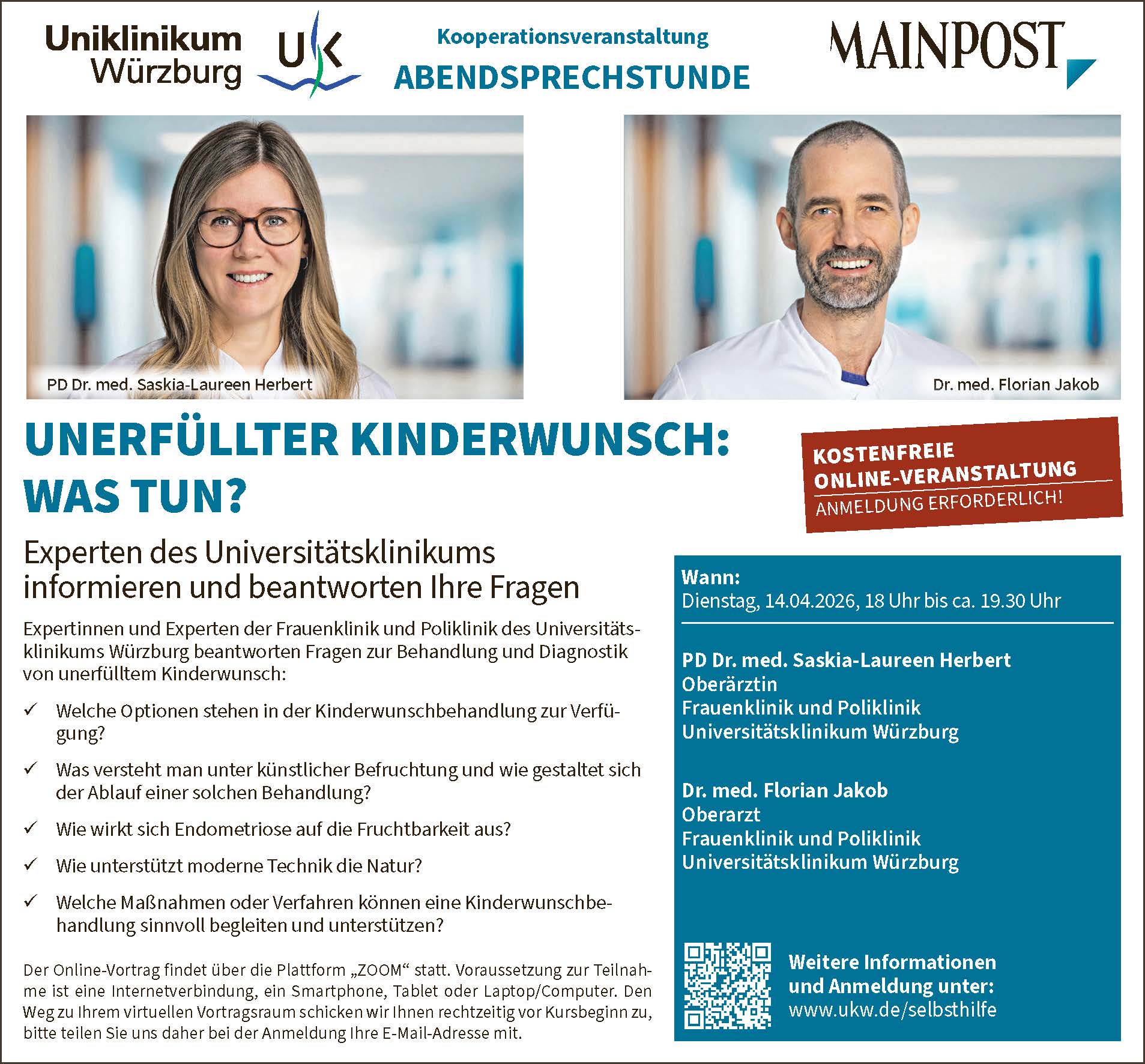 Hier gehts zur Anmeldung: UKW Abendsprechstunde - Main-Post-Erlebniswelt